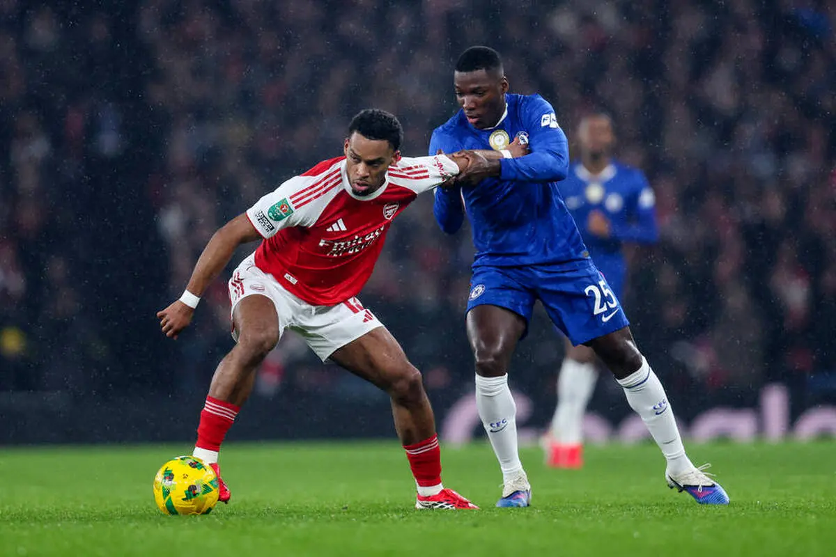 بازی برگشت دربی لندن در چارچوب کارابائو کاپ، در فضایی بارانی و پر از اتمسفر متشنج ورزشگاه امارات آغاز شد. با توجه به برتری ۳-۲ آرسنال در بازی رفت، رویکرد شاگردان میکل آرتتا دفاعیتر و مبتنی بر حفظ نتیجه بود، در حالی که چلسی تحت هدایت مائوریسیو پوچتینو (رزنیور)، با آرایش ۳-۵-۲، حساب ویژهای روی ضدحملات باز کرده بود. نیمه اول به طرز محسوسی دچار کندی بود و بیشتر به یک دوئل فیزیکی سنگین در میانه میدان شباهت داشت.